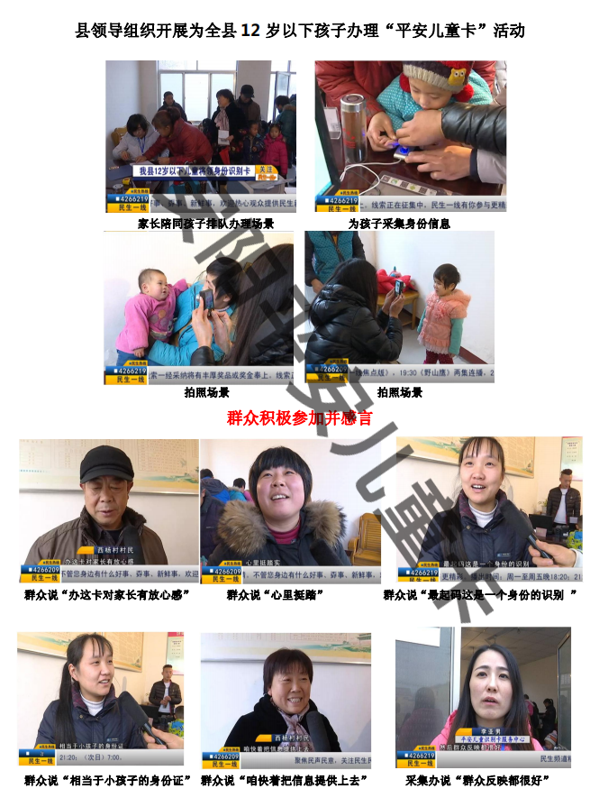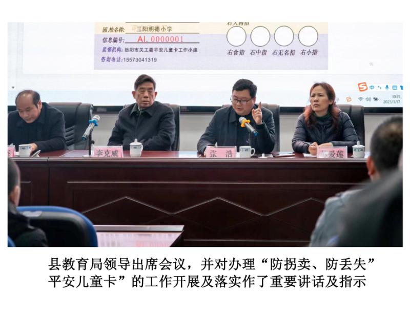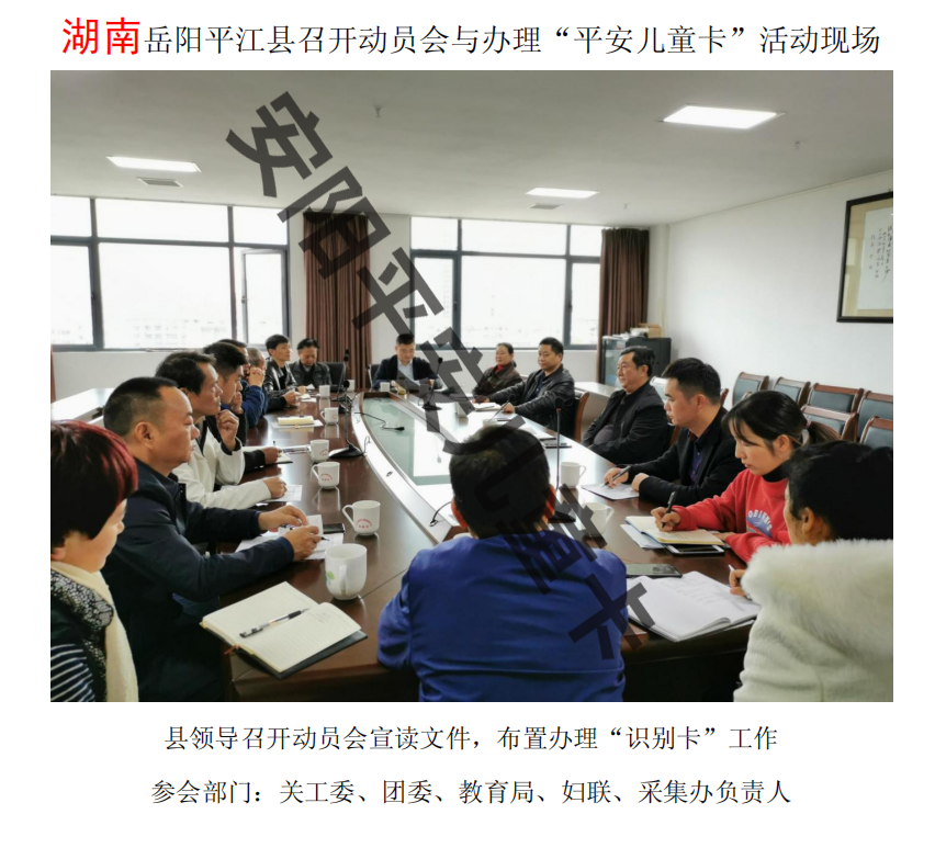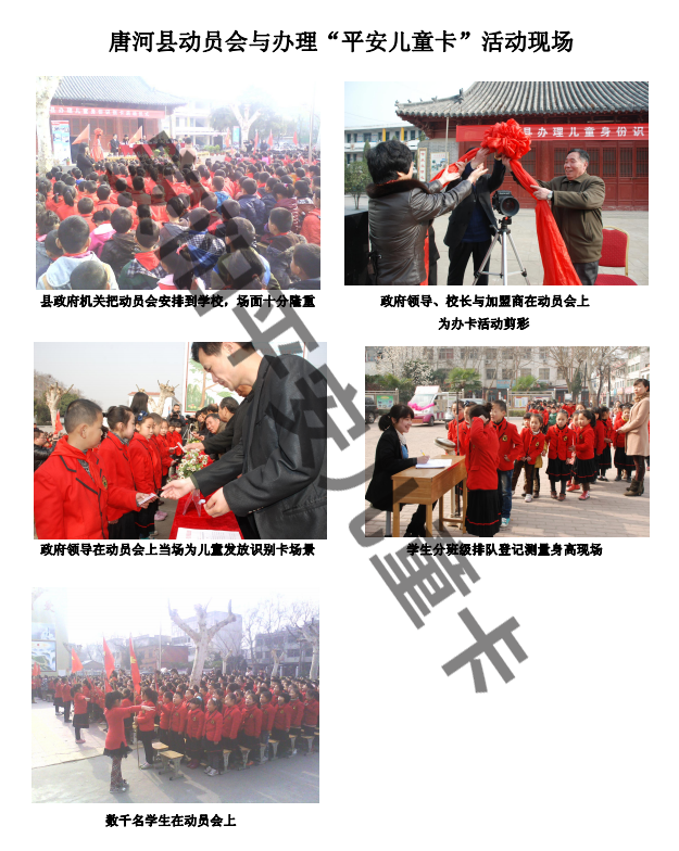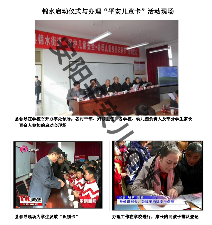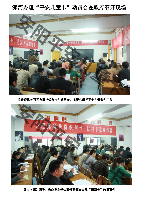 地方政府机构领导高度重视办理"平安儿童卡"这项工作,专门召开各乡(镇)领导、教办室主任等相关部分领导参加的动员会。把任务落实到乡(镇)、村庄(社区)、学校、幼儿园,强调把这项爱心工程当做政治任务去抓,切实为孩子们办好这件好事、实事。
